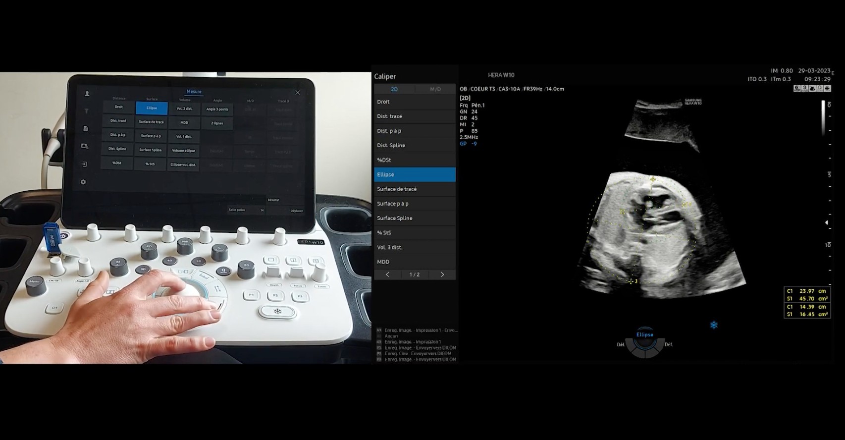 Grâce à son interface DICOM, il récupère toutes les données de votre échographe et génère pour vous automatiquement comptes rendus, ordonnances et documents.